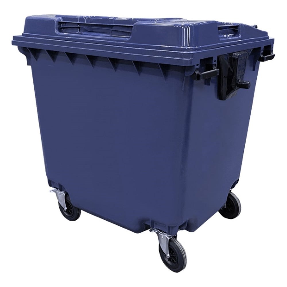 Мусорный контейнер Тара.ру полиэтилен, 1100 л, на колёсах, цвет синий 25572 предназначен для сбора бытовых и промышленный отходов. Изготовлен из прочного полиэтилена низкого давления, за счет чего отличается долгим сроком службы. Имеет резиновые колеса, что позволяет с легкостью и без лишнего шума перемещать контейнер от площадки до мусоровоза. Оснащен крышкой, благодаря чему защищает содержимое от животных и птиц.