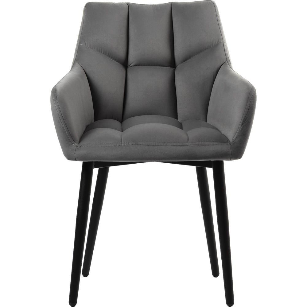 Комплект стульев Divan24 Милан Люкс в сером цвете станет отличным дополнением для дома или гостиной. Эти стулья выполнены в современном стиле и обладают элегантным дизайном с фигурной спинкой и сиденьем, что придает им изысканный вид. Обивка из велюра добавляет мягкости и комфорта, а подлокотники обеспечивают дополнительную поддержку. Каркас из металла с черным покрытием гарантирует прочность и устойчивость конструкции, выдерживая нагрузку до 120 кг. Высота сиденья составляет 490 мм, что обеспечивает удобную посадку. Комплект включает два стула, что делает его идеальным для обеденной зоны или кухни. Эти стулья не только функциональны, но и стильны, что позволяет им гармонично вписаться в любой интерьер.