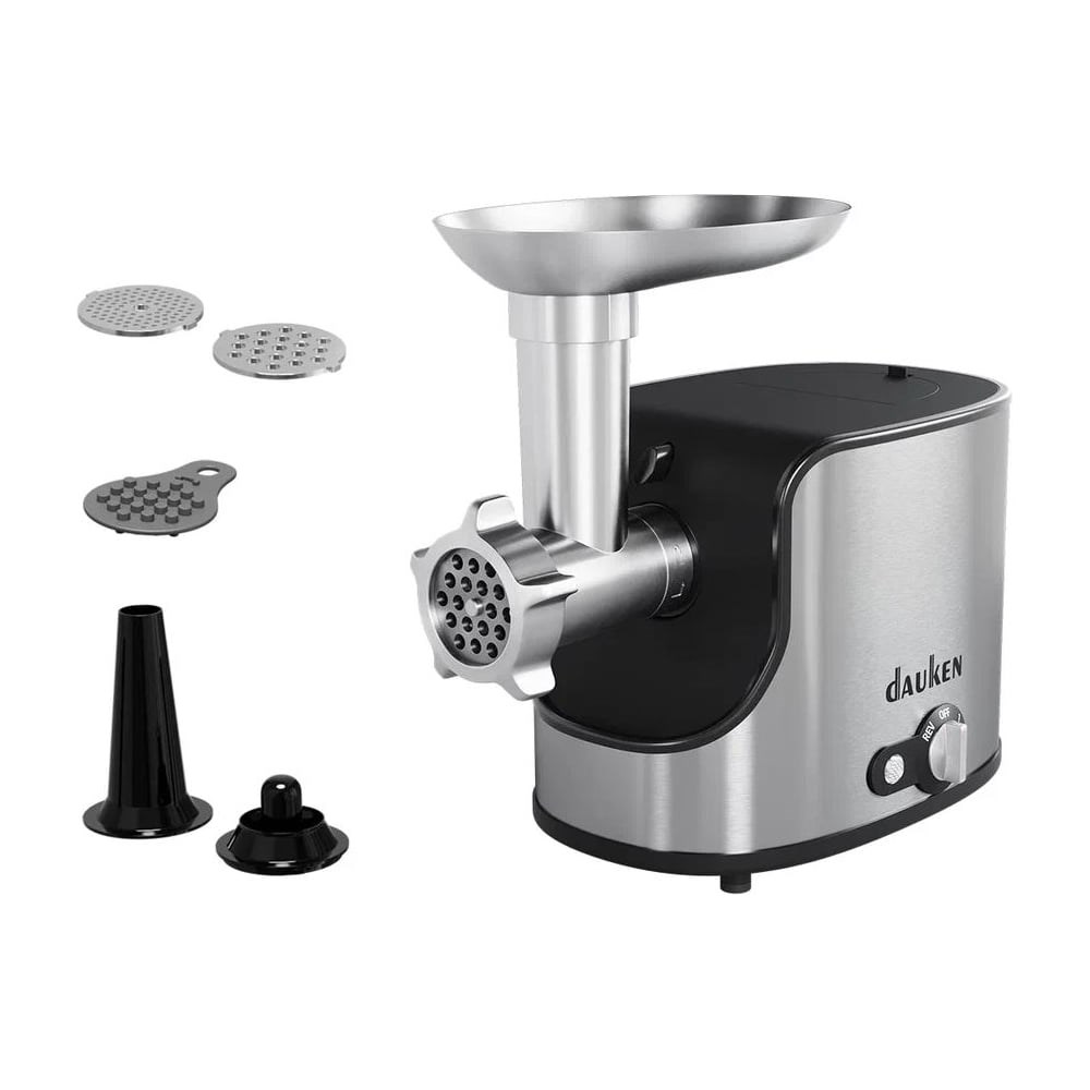 Мясорубка Dauken FW3040 обладает невероятно изящным и стильным дизайном, который прекрасно впишется в любой интерьер. Корпус мясорубки, изготовлен из полированного металла, который не только долговечен, но и легок в уходе. Насадки и комплектующие у данной модели изготовлены из нержавеющей стали, а ножи из кованной стали, устойчивой к затуплению, прослужат верой и правдой на протяжении нескольких лет. Мощность Dauken FW3040J - 800 Вт (Мощность при блокировке вала: 1800 Вт), а производительность составляет 2,5 кг/мин. Кроме того, данная модель оснащена системой защиты от перегрева и вы сможете использовать ее на высоких мощностях, не переживая, что мясорубка выйдет из строя. Система сама прекратит работу в случае критического повышения температуры. Данная модель оснащена двумя скоростями и функцией реверса, которая необходима в случае возникновения проблем с проходимостью продуктов. Dauken FW3040J не только имеет достаточно компактные габариты, но также снабжена специальным отсеком для хранения комплектующих. В комплекте к мясорубке идут 3 дополнительных диска с отверстиями разного диаметра, что позволяет значительно расширить разнообразие в приготовлении блюд.
