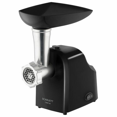 Мясорубка SCARLETT SC-MG45M21, 1800 Вт, производительность 2 кг/мин, 3 насадки, реверс, пластик, черная