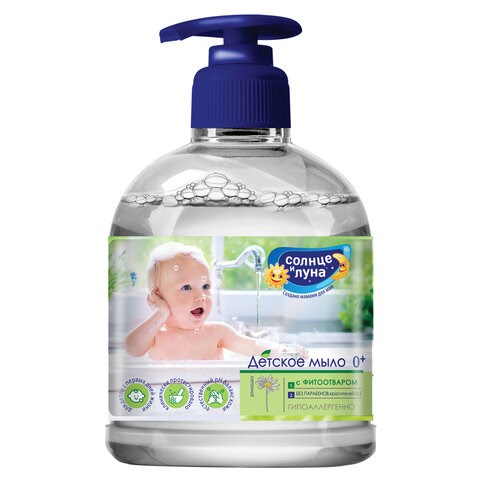 Мыло жидкое детское 500 мл, СОЛНЦЕ И ЛУНА Купание 0+, гипоаллергенное, дозатор, 10396