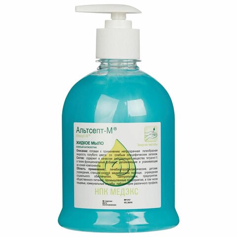 Мыло жидкое дезинфицирующее 500 мл АЛЬТСЕПТ М, увлажняющее, дозатор