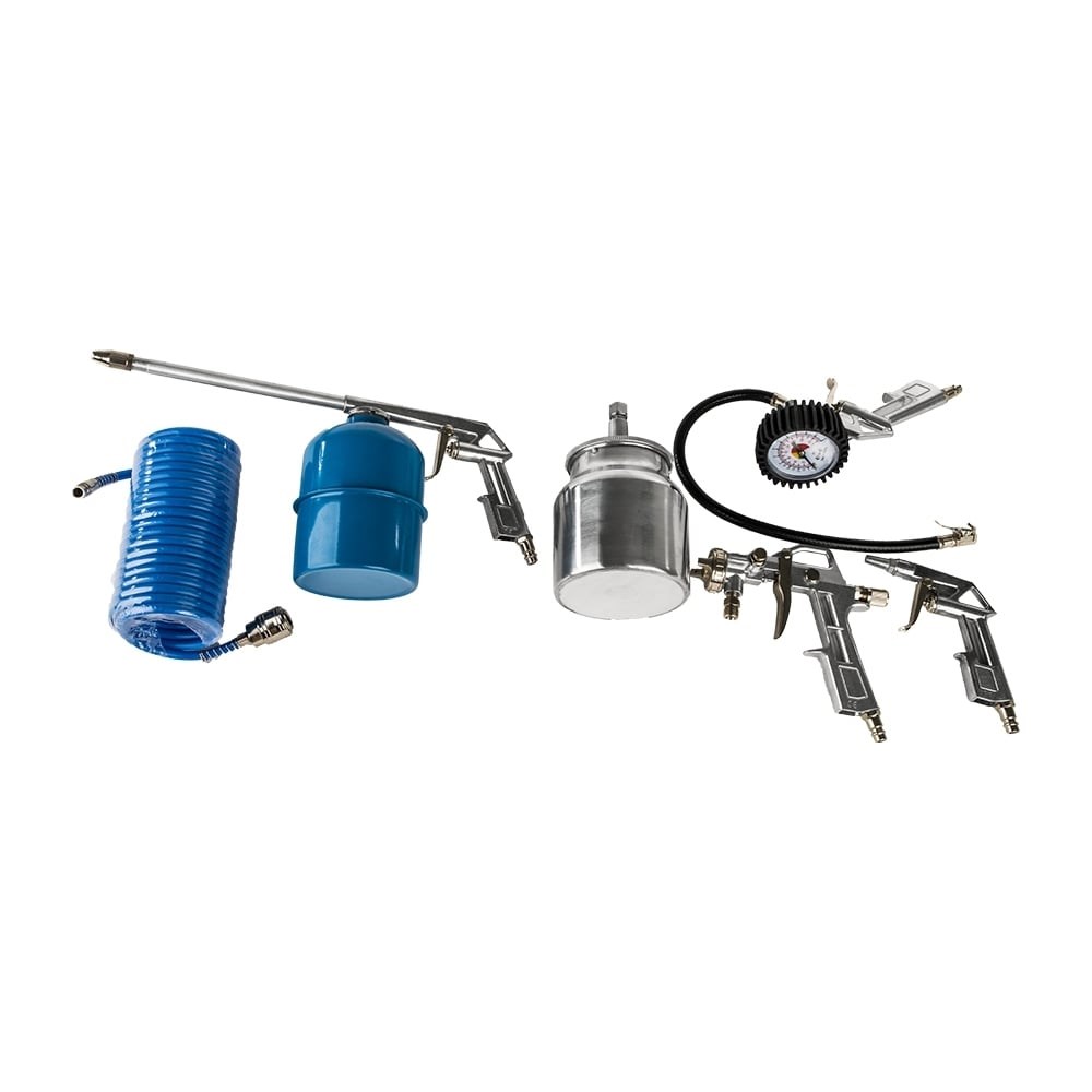В наборепистолет для накачки шин, краскораспылитель, спиральный шланг, продувочный пистолет, промывочный пистолет