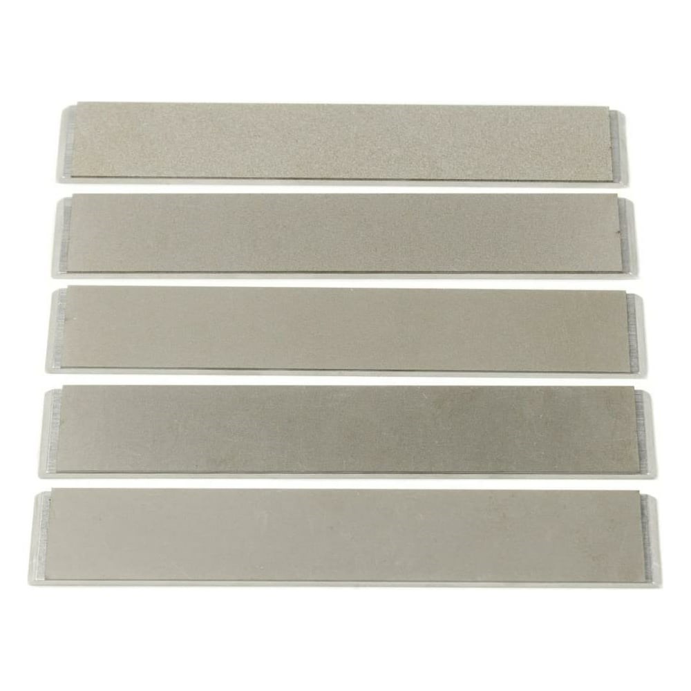 Набор алмазных пластин TSPROF 5 шт TS-SH2000740 предназначен для заточки ножей и ножниц. Благодаря гальванической связке не требуют подготовки к работе, поэтому сразу готовы к использованию. За счет выступающих алмазных зерен обеспечивают интенсивный съем металла, поэтому могут применяться для режущей кромки со сколами и заминами. Набор имеет высокую прочность, благодаря чему устойчив к повреждениям, поэтому прослужит долгое время.