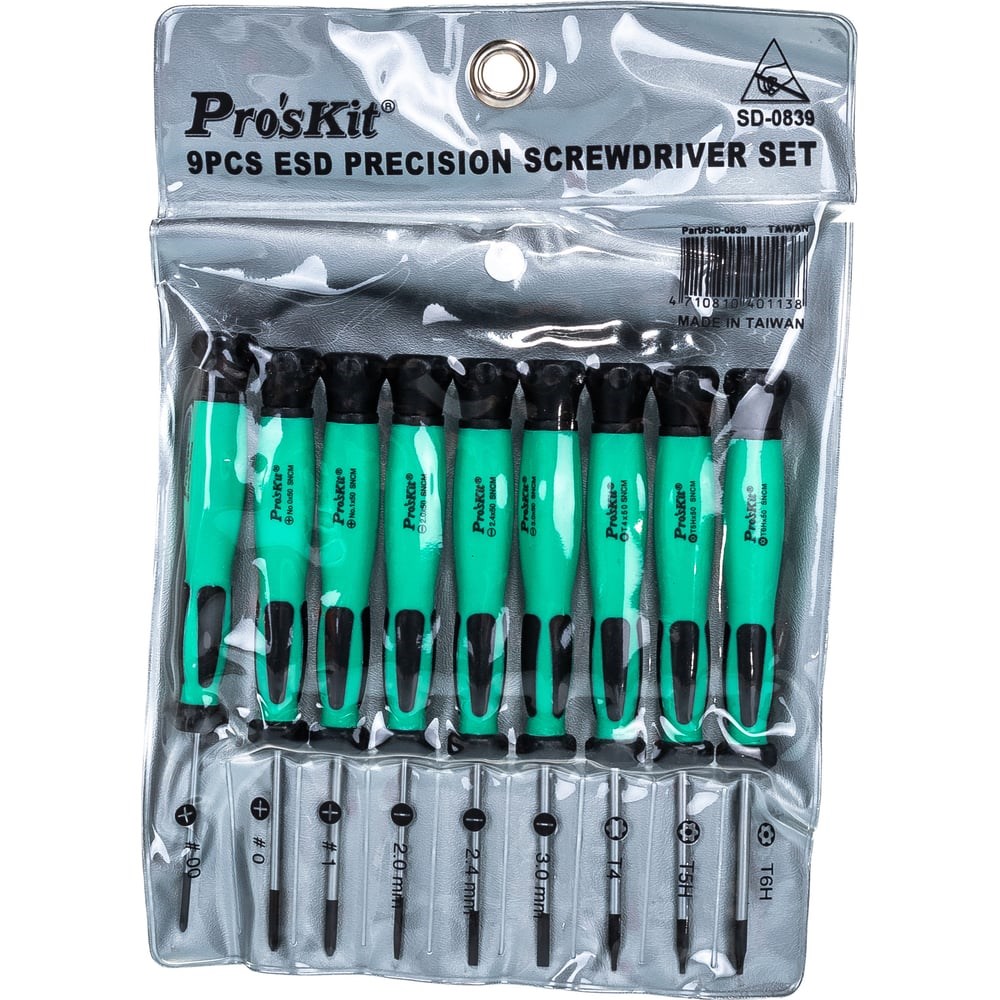 Набор отверток ProsKit SD-0839 00325128 применяется для точных работ с крепежом различного формата. Инструмент удобен в использовании и обеспечивает предельно верное вхождение винта в паз. Наконечник покрыт черной оксидной пленкой для увеличения срока службы.