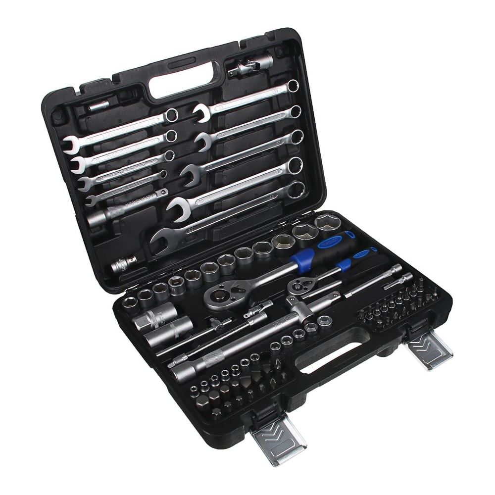 Необходимы инструменты для проведения текущего ремонта автомобиля? Набор автомобильных инструментов РОКОТ из 83 предметов включает в себя все самое необходимое: отвертки, гаечные ключи, набор бит с держателями, удлинители торцовых головок и многое другое. Все предметы изготовлены из качественной прочной закаленной стали, что гарантирует долгий срок службы. Удобный кейс надежно закрывается на замки и имеет ручку для переноски. Его можно компактно хранить как в гараже, так и в автомобиле.