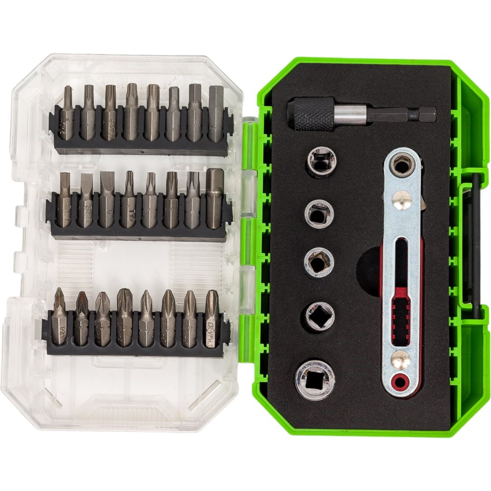 Набор бит и головок TORGWIN 32 предмета T384776 содержит в себе биты и головки самых популярных типоразмеров и ключ с храповым механизмом. Набор предназначен для закручивания винтов и болтов. Поставляется в пластиковом боксе (кейсе).