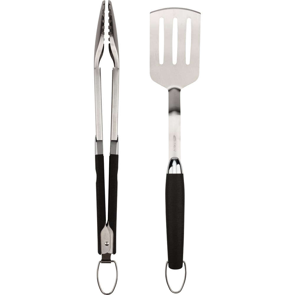 Набор для гриля серии Комфорт состоит из 2-х предметов: лопатки (440x50x1 мм) и щипцов (460x90x1.5 мм). Длинные рукоятки аксессуаров из термопластичной резины позволяют перемещать продукты на решетке на безопасном расстоянии от жара, предотвращая ожоги и травмы. Лопатка перевернет на решетке любые продукты: стейки, котлеты для бургеров, овощи. Благодаря специальной конструкции щипцы помогают переместить еду, не нарушив ее форму, тем самым сохраняя эстетичный вид для подачи блюда. Аксессуары выполнены из прочной и экологичной нержавеющей стали, за счет чего выдерживают большие перепады температур, устойчивы к коррозии. Эргономичные рукоятки из термопластичной резины не позволяют изделиям скользить в руке в процессе готовки.