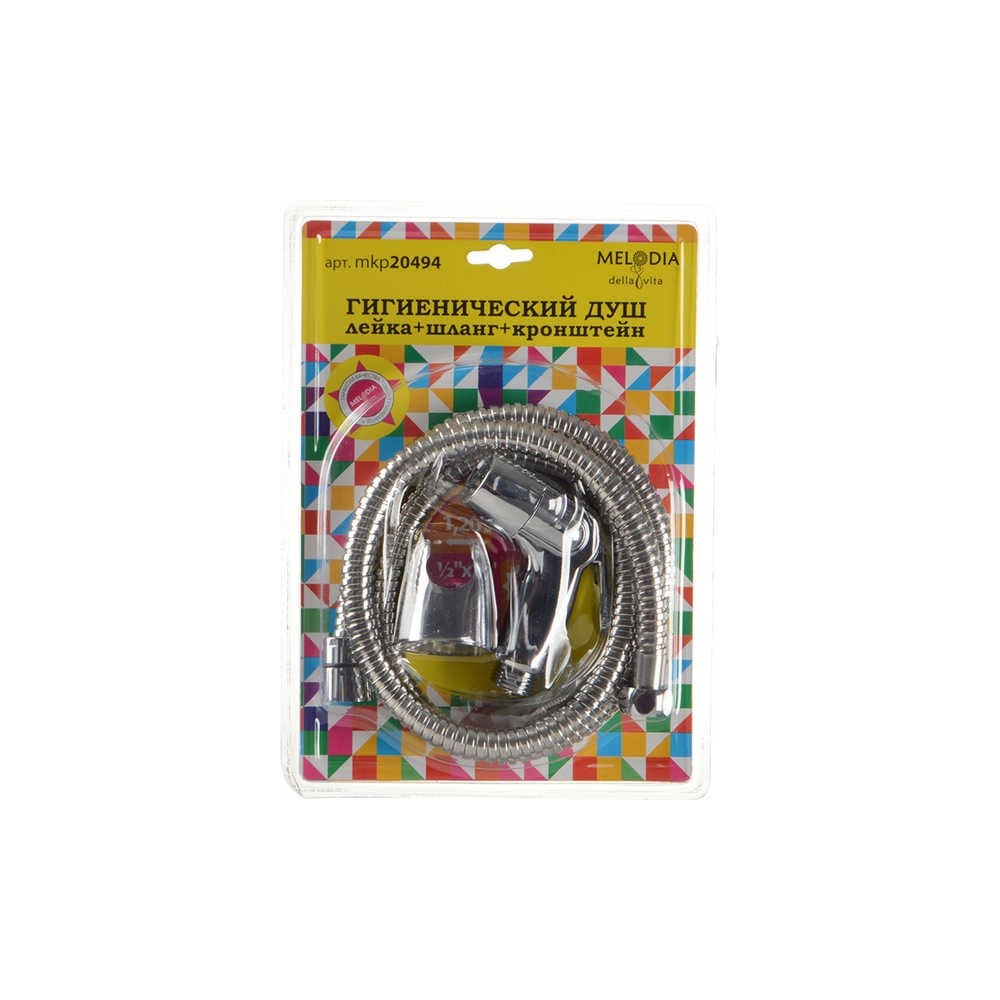 Лейка для биде изготовлена из ABS-пластика с хромированной поверхностью. Снабжена рычажком-выключателем для остановки потока воды. В комплекте лейка, шланг и крепление к стене.
