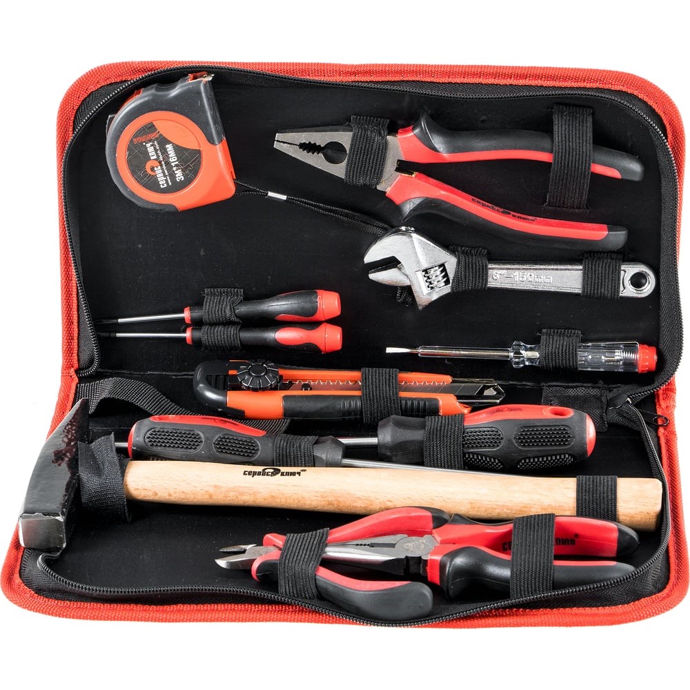 Набор для дома СЕРВИС КЛЮЧ 12 предметов 71012 позволяет провести ремонт и отделочные работы с минимальными усилиями. В комплект входит измерительный инструмент, отвертки, а также вспомогательное оборудование. Для компактности хранения набор уложен в небольшой пенал на молнии.