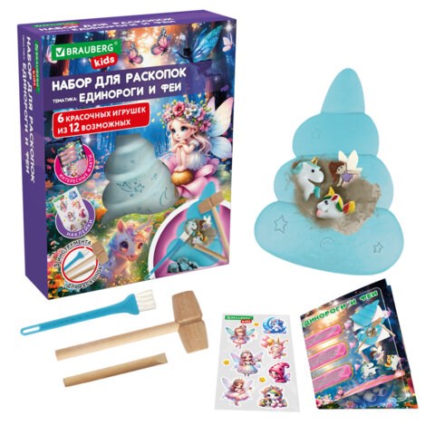 Набор для раскопок "Единороги и феи" 17x21,5 см, инструменты, тату, BRAUBERG KIDS, 665926