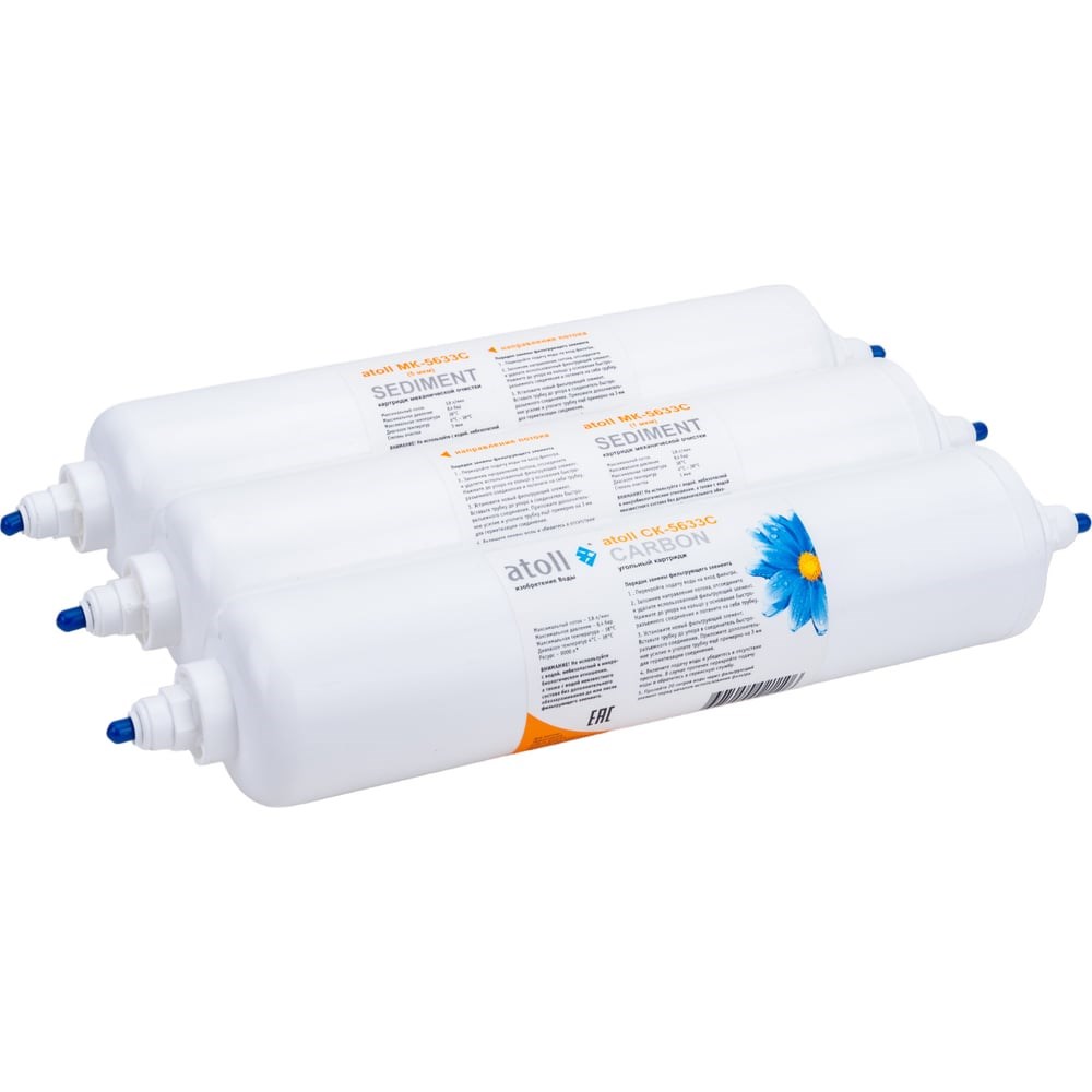 Набор фильтрэлементов Atoll №204 - применяется для грубой (предварительной) очистки от окалин, песка, камней и взвесей улучшения запаха, вкуса и цвета воды, т. е. ее органолептических показателей удаления растворенных газов, остаточного хлора, органических соединений, бензола, четыреххлористого углерода, трудноудаляемых веществ, например, паров ртути, диоксида серы, аммиака.