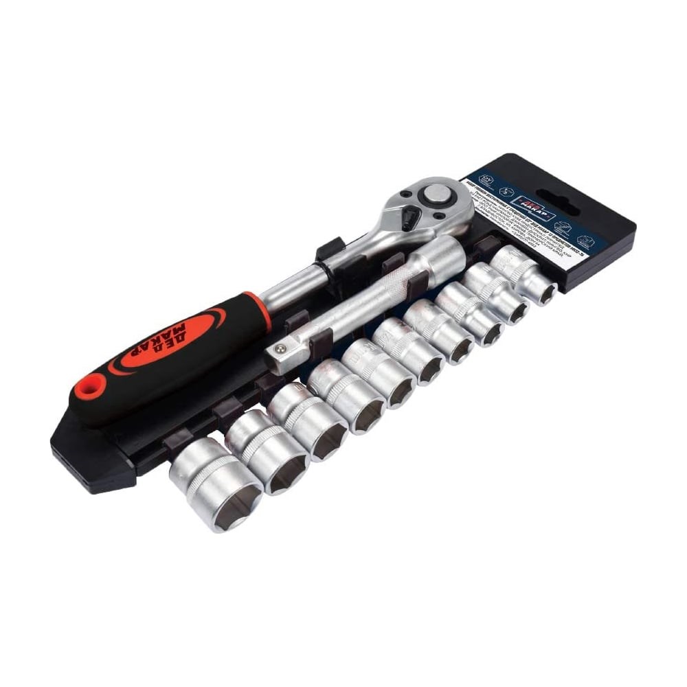Набор произведён специально для автомобилистов. При изготовлении контролируется в соответствии с международными стандартами. Трещотка оборудована быстросъемным механизмом для фиксации торцевых головок. Рукоять инструмента оборудована эргономичной пластиковой ручкой. Инструменты изготовлены из высокопрочной хромованадиевой стали, которая отличается высокой прочностью и износостойкостью, обладает повышенной устойчивостью к коррозии. Набор головок с трещоткой поставляется в удобном органайзере для хранения из прочного пластика. Производитель дает гарантию на весь производимый инструмент.
