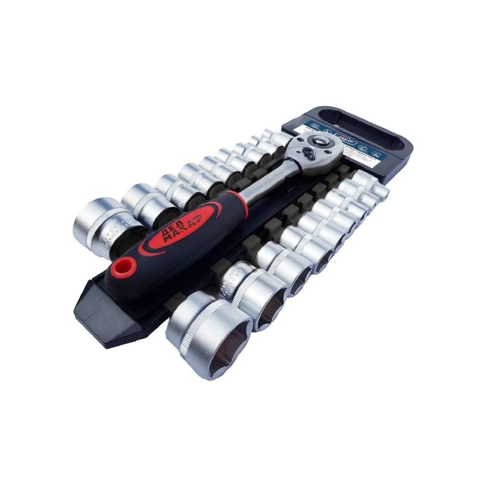 Набор произведён специально для автомобилистов. При изготовлении контролируется в соответствии с международными стандартами. Трещотка оборудована быстросъемным механизмом для фиксации торцевых головок. Рукоять инструмента оборудована эргономичной пластиковой ручкой. Инструменты изготовлены из высокопрочной хромованадиевой стали, которая отличается высокой прочностью и износостойкостью, обладает повышенной устойчивостью к коррозии. Набор головок с трещоткой поставляется в удобном органайзере для хранения из прочного пластика. Производитель дает гарантию на весь производимый инструмент.