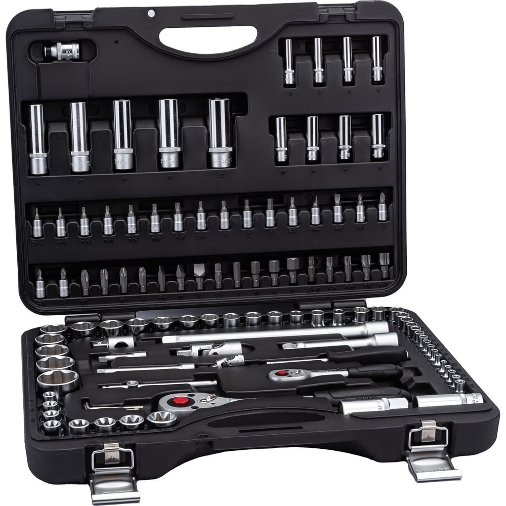Набор головок и приспособлений FORCE 1/2 1/4 108 предметов 41082R состоит из большого количество инструментов, которые предназначены для ремонта и обслуживания крепежных элементов, например, в автомобиле. Рабочие части приспособлений комплекта изготовлены из прочной стали. В комплект входит большое количество головок для работы с крепежом различных размеров. Трещотки имеют посадочный размер 1/2 и 1/4". Для хранение комплект поставляется в компактном кейсе.