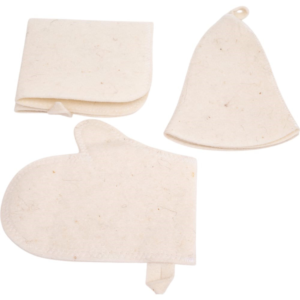 Набор из трех предметов Hot Pot Шапка, коврик, рукавица, войлок 42013 используется в бане или в сауне. Классический набор для сауны – это коврик, шапочка и рукавица из войлока. Каждая деталь имеет свое назначение и предполагает постоянное использование во время посещения бани и сауны. Коврик убережет от ожогов в сауне, шапочка предотвратит тепловой удар и не позволит высокой температуре и влажности испортить волосы, а рукавица не позволит обжечься паром.