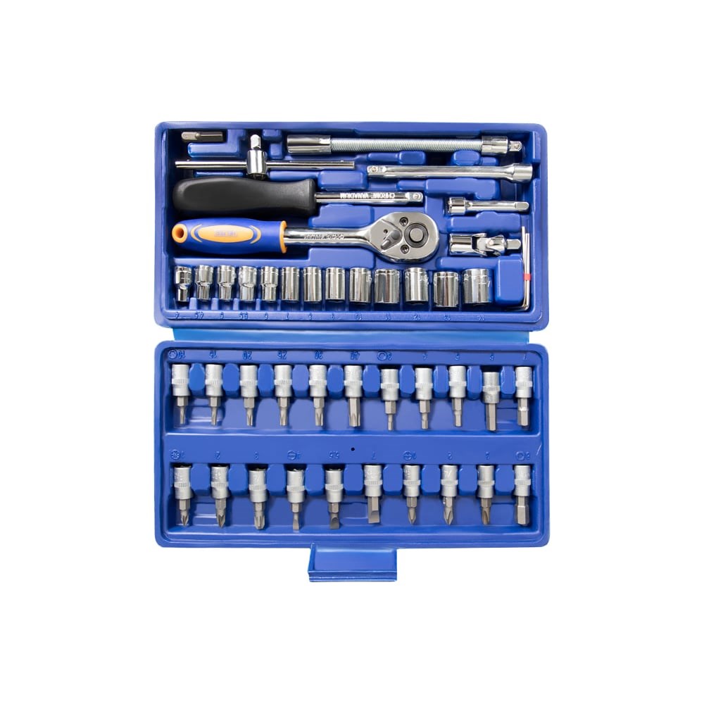 Набор инструмента HELFER 1/4 Dr 46 предметов HF005050 представляет собой оптимальный комплект деталей, необходимых для выполнения монтажных и ремонтных задач. Набор укомплектован в удобный кейс из пластика для хранения и эксплуатации. Инструменты выполнены из углеродистой стали, которая отличается повышенной прочностью и высокой твердостью.