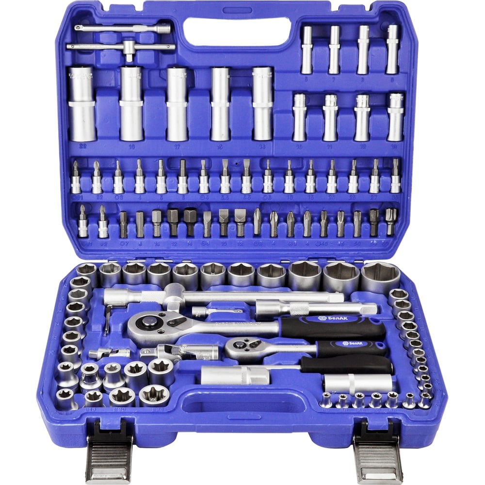Набор инструментов БелАК ПРОФИ, 108 предметов БАК.07001 выполнен из специальной комплексно легированной стали с повышенным содержанием углерода. Прочные металлические замки и эргономичный ударопрочный кейс делают набор головок с трещоткой эффективным и мобильным. Благодаря удачно подобранной комплектации набор подойдет для большого количества различных задач, существенно снижает зависимость от стороннего инструмента и позволяет эффективно работать, не прибегая к дополнительным комплектам.