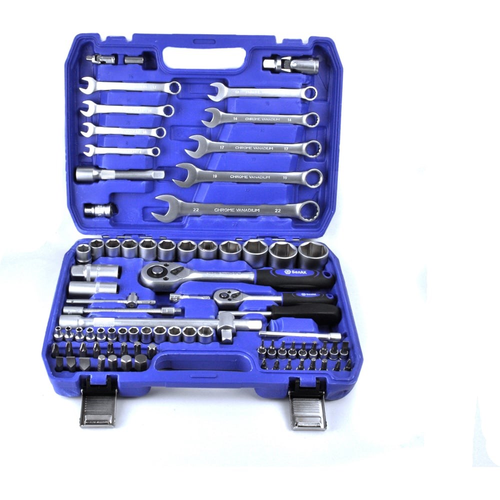 Набор инструментов БелАК ПРОФИ, 82 предмета БАК.07003 выполнен из специальной комплексно легированной стали с повышенным содержанием углерода. Прочные металлические замки и эргономичный ударопрочный кейс делают набор головок с трещоткой эффективным и мобильным. Благодаря удачно подобранной комплектации набор подойдет для большого количества различных задач, существенно снижает зависимость от стороннего инструмента и позволяет эффективно работать, не прибегая к дополнительным комплектам.