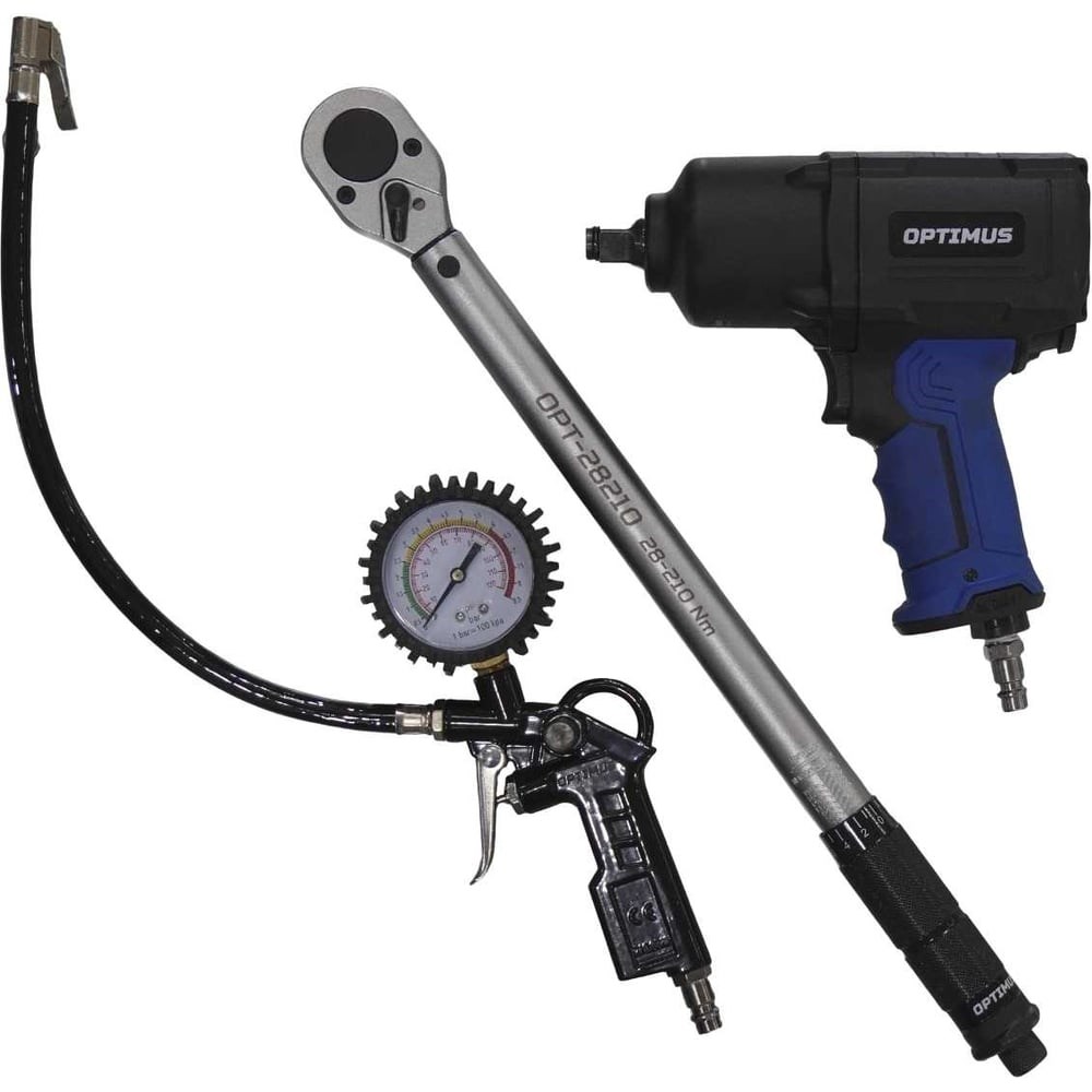 Главным компонентом набора является гайковерт пневматический ударный OPTIMUS 1600 Нм с композитным корпусом является мощным и надежным инструментом для работы с гаек и болтов. Корпус изготовлен из легкого и ударопрочного композитного материала, что обеспечивает долговечность инструмента. Гайковерт имеет 8 режимов работы, включая 4 режима на закручивание и 4 режима на откручивание. Приводной вал изготовлен из высоколегированной стали, а ударный механизм TWIN HAMMER обеспечивает мгновенный сбалансированный удар и минимальную вибрацию. Пневмодвигатель изготовлен из высокоресурсного материала и оснащен 7 лопастями ротора и подшипниками индустриального стандарта. Гайковерт также имеет кнопочный переключатель режимов для удобства работы одной рукой и прорезиненную рукоять для комфортного использования. Отвод отработанного воздуха вниз обеспечивает чистоту рабочего места. Динамометрический ключ Optimus 28-210 Нм. С его широким диапазоном измерений от 28 до 210 Нм, этот ключ позволяет работать с различными типами автомобилей. Высокая точность измерений соответствует стандартам DIN, ANSI и ГОСТ, а максимальная погрешность составляет всего ± 4%. Ключ калибруется на заводе и имеет калибровочный сертификат, что гарантирует его надежность.Пистолет для подкачки шин с аналоговым манометром Optimus 63 мм, 8 бар является отличным дополнением к набору. Он обеспечивает удобство и точность при подкачке шин, а также имеет компактный и прочный дизайн.