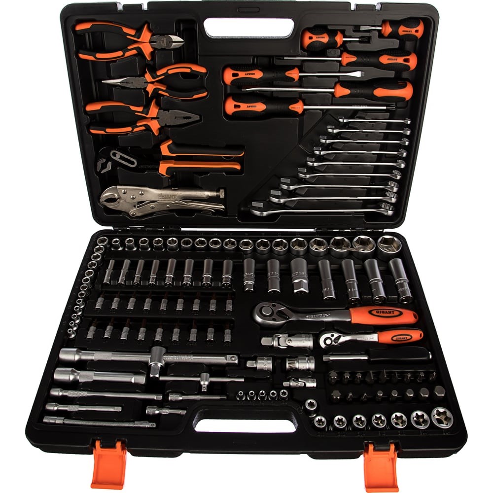 Набор инструментов Gigant 131 предмет GAS 131 представляет собой многофункциональный комплект, предназначенный для обслуживания и ремонта автомобиля. Кейс для хранения изготовлен из экологичного пластика, обладает ручкой и защелками для комфортной транспортировки. Все инструменты изготовлены из высокопрочной хромованадиевой стали, отличающейся стойкостью к большим нагрузкам и коррозии. В наборе представлено большое количество инструментов и приспособлений. Подобраны самые распространенные типоразмеры. Gigant – собственная торговая марка компании ВсеИнструменты.ру, разработанная специально для требовательных мастеров. Продукция представлена профессиональными и бытовыми инструментами, имеет доступную цену и высокое качество. При изготовлении товаров Gigant используется современное оборудование и прочные материалы. Производство осуществляется на современных предприятиях России и Азии. Тестирование товаров осуществляется в два этапа, каждая партия инструментов проходит проверку на соответствие стандартам и заявленным техническим характеристикам. Это является залогом качества и надежности готового продукта. Продукция представлена широкой линейкой инструментов. У нас можно приобрести ручной инструмент, строительный, садовый, сантехнический, климатический, крепежный, автогаражный, а также станки, расходные материалы и многое другое.