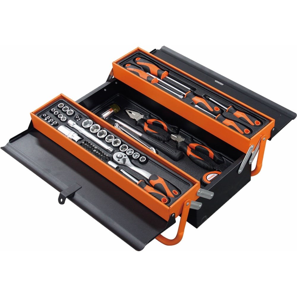 Набор инструментов KENDO в переносном ящике для инструментов, 3 лотка, 70 предметов 90201 используется для работ с крепежом при проведении различных монтажных и ремонтных работ. Инструмент выполнен из качественной хромованадиевой стали. Материал отличается высокой прочностью и долговечностью. Специальное покрытие обеспечивает защиту от коррозии и стойкость к износу. Набор поставляется в большом удобно ящике для рационального хранения и транспортировки.