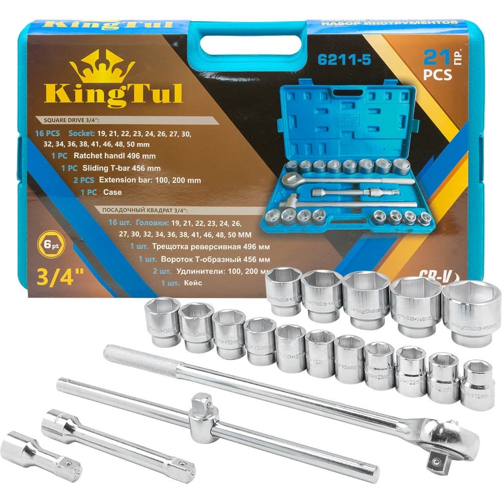 Набор инструментов на 21 предмет с посадочным квадратом 3/4" от бренда KingTul — надежный помощник для любых задачЭтот набор инструментов на 21 предмет с посадочным квадратом 3/4" — идеальное решение для тех, кто ценит качество и надежность в работе с крепежными элементами. Включая головки, трещотку, вороток и удлинители, набор подходит для использования в автомобильном ремонте, строительстве, промышленных процессах и других областях.Прочность и долговечность. Инструменты изготовлены из высококачественной хромованадиевой стали (Cr-V), что гарантирует их устойчивость к значительным нагрузкам, ударам и износу. Вы можете быть уверены, что набор прослужит вам долгие годы.Универсальность применения. Набор подходит для работы с тугими крепежными элементами, зажима и разжима деталей внутри механизмов. Он идеален для автосервиса, строительства и промышленных задач, обеспечивая точность и эффективность работы.Удобство в труднодоступных местах. Удлинители разной длины позволяют легко добраться до крепежных элементов в труднодоступных местах, что делает вашу работу более комфортной и продуктивной.Полная комплектация. Набор включает все необходимое для работы с крепежом: 16 шестигранных головок от 19 до 50 мм, реверсивную трещотку, удлинители и Т-образный вороток. Всё это организовано в прочном пластиковом кейсе для удобного хранения и транспортировки.Набор для автосервиса, обеспечивает быстрое и эффективное выполнение ремонтных работ.