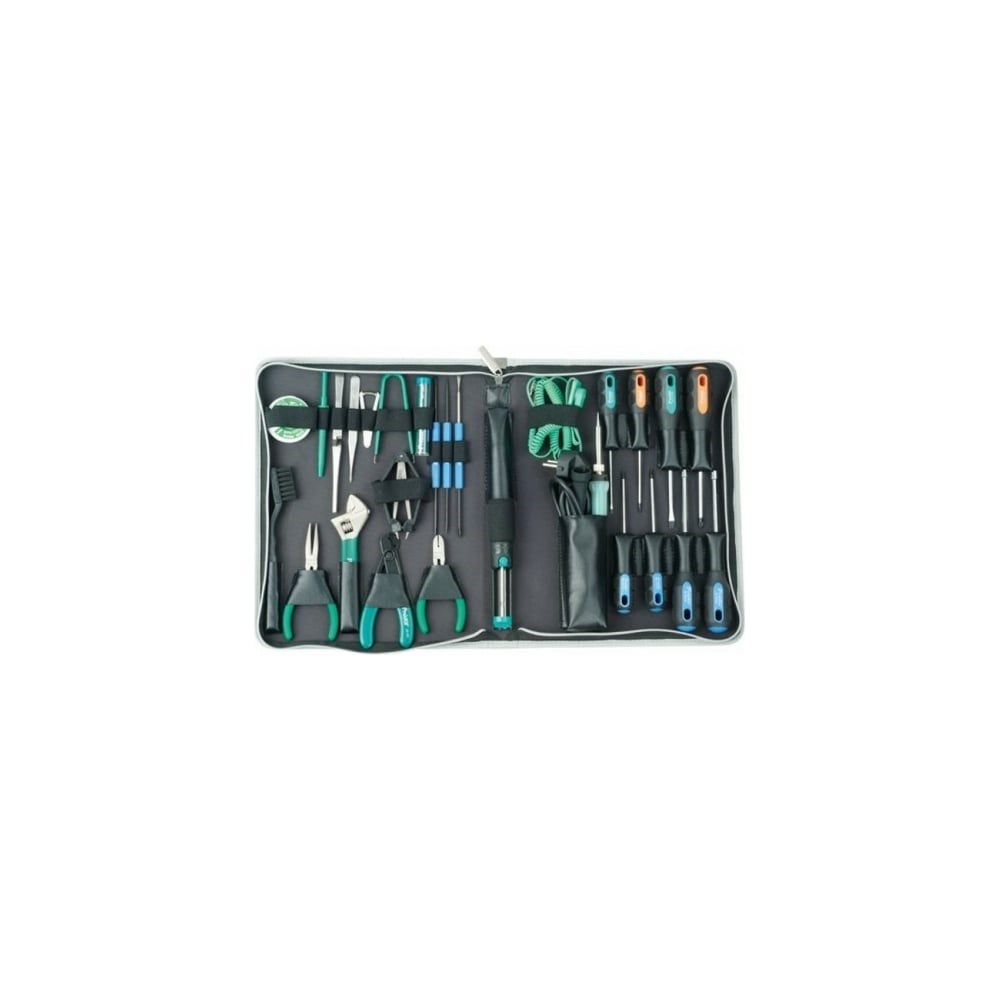 Набор инструмента ProsKit PK-2080 00325071 включает принадлежности, которые необходимы при ремонте компьютеров и ноутбуков. Все инструменты изготовлены из высококачественных материалов и подходят для профессионального использования. Поставляются в специальной сумке-пенале.