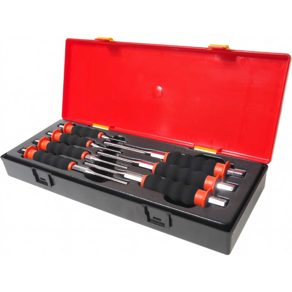 Набор выколоток с рукояткой 7 предметов JTC K8071 служат для изготовления отверстий. Размер входящих в комплект инструментов - 2мм, 3мм, 4мм, 5мм, 6мм, 7мм и 8мм. Бокс препятствует потере выколоток при транспортировке.