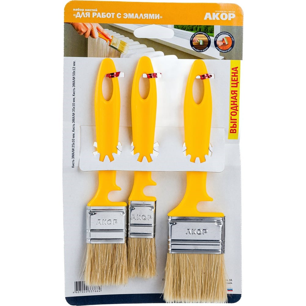 Набор кистей по эмалями Акор натур.щетина 25х10, 35х10, 50х12мм КЭ 3 шт 4607044337664