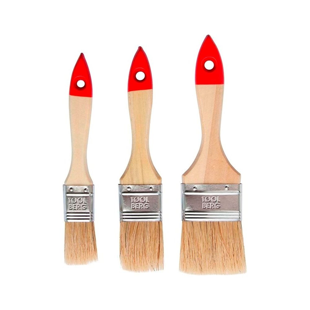 Набор кистей Toolberg 3 шт 0105003 включает в себя кисти, оснащенные удобной и легкой рукояткой со специальным профилем для надежного удержания инструмента. Также она защищена от влаги.Бандаж соединяет между собой рукоять и щетину, исключая выпадение волокон, что продлевает срок службы инструмента. Можно использовать в бытовых условиях и в мастерской.
