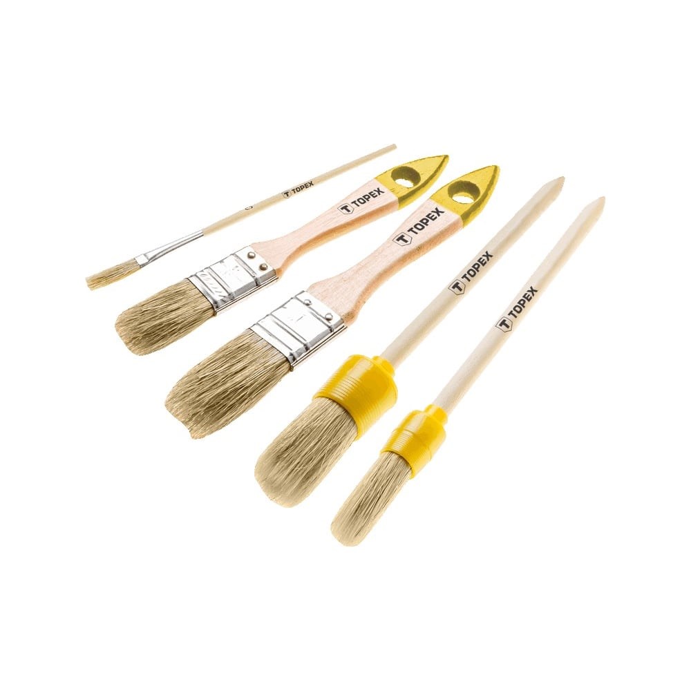 Набор кистей TOPEX Стандарт 5 шт. 20B816 представляет собой комплект кистей для выполнения ремонтных и малярных работ. Инструменты относятся к типу универсальных и могут применяться с любыми видами краски. Кисти подходят для бытового использования домашними мастерами.