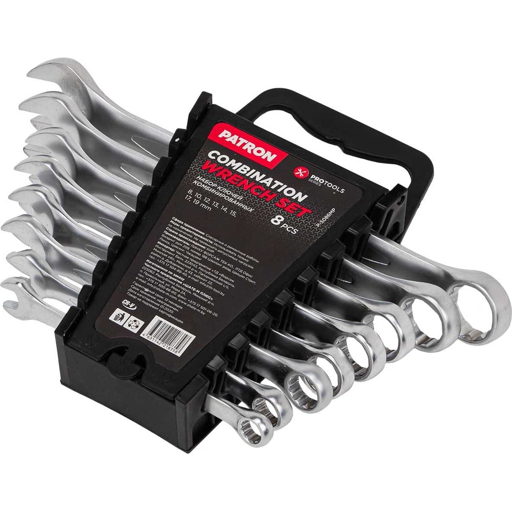 Набор комбинированных ключей от бренда Patron включает 8 предметов, сочетая в себе рожковый и накидной профили. Это универсальный инструмент, подходящий для работы в труднодоступных местах.ХарактеристикиКоличество ключей: 8 предметовРазмеры ключей: 8, 10, 12, 13, 14, 15, 17, 19 ммМатериал: Высококачественная хромованадиевая стальУниверсальность: Рожковая сторона подходит для крепежа с односторонним доступом, накидная часть с 12 гранями — для высоконагруженных соединений.Широкий спектр применения: Идеально подходит для ремонта легковых и грузовых автомобилей, мототехники, квадроциклов, снегоходов и садовой техники.Удобный пластиковый держатель: Все ключи надежно закреплены и легко доступны, что упрощает транспортировку и хранение.Компактность: Легко брать с собой и удобно хранить в автомобиле.Набор комбинированных ключей Patron — это надежный и компактный инструмент, который включает все необходимые размеры для выполнения различных задач. Его качество и удобство хранения делают его идеальным выбором для профессионалов и любителей.