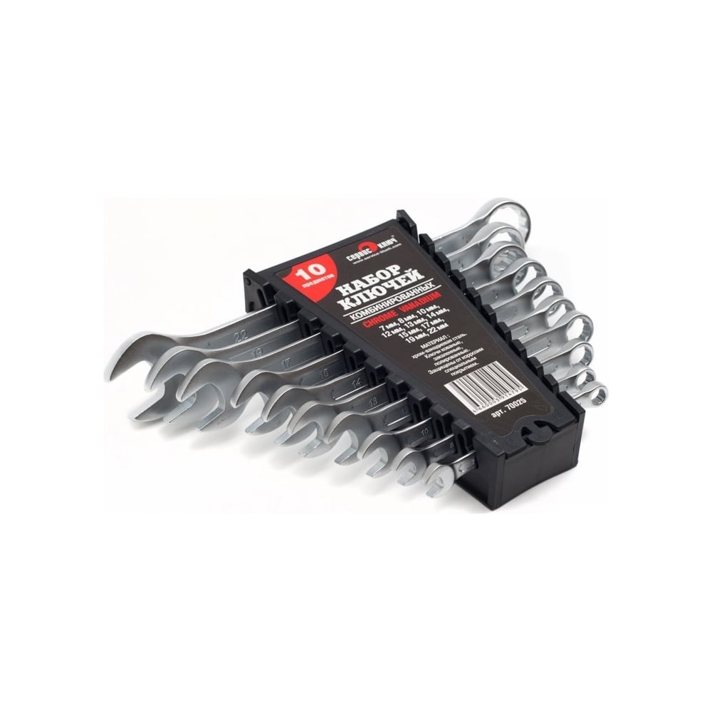 Набор ключей СЕРВИС КЛЮЧ 10 предметов 7, 8, 10, 12, 13, 14, 15, 17, 19, 22 мм, холодный штамп CR-V 70025 позволяет эффективно работать с шестигранным крепежом. Благодаря использованию метода холодной штамповки инструмент выдерживает большое усилие на изгиб и отворачивает даже самый сложный крепеж.