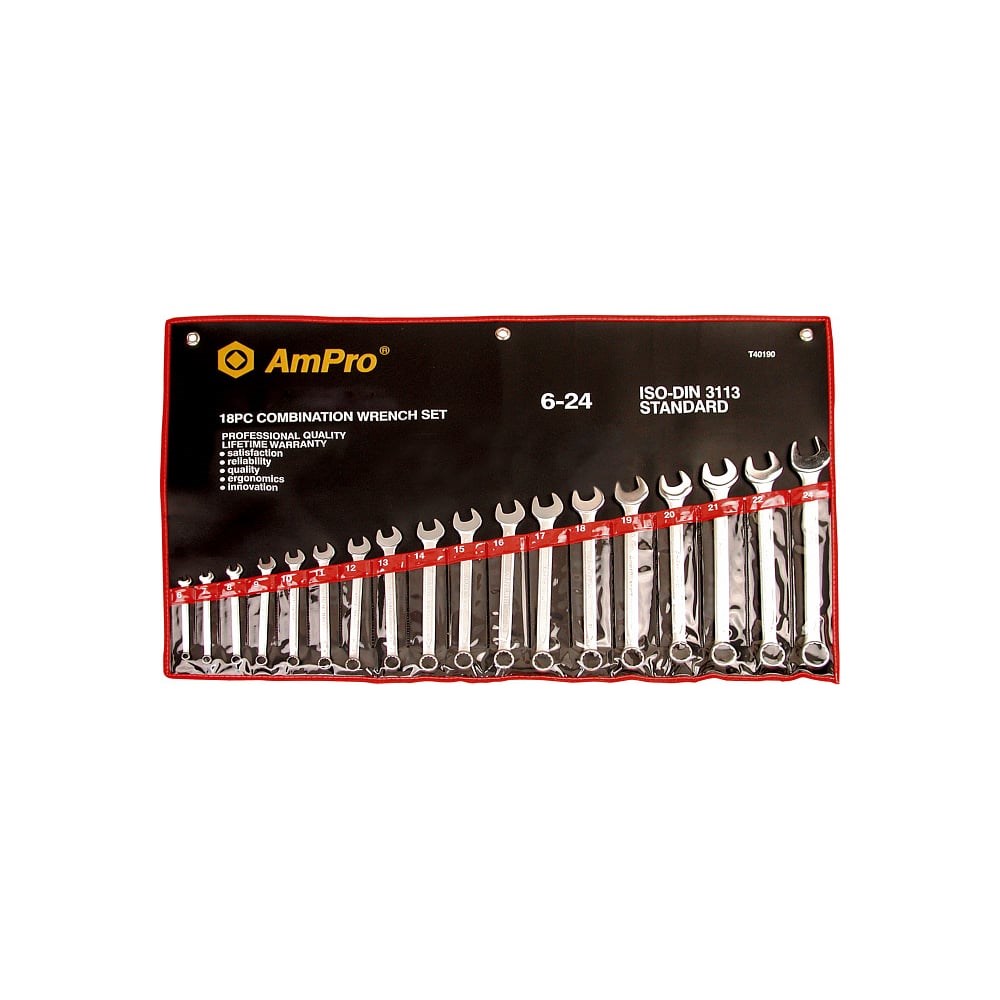 Набор комбинированных ключей AmPro 22 предмета 10-32 мм T40191 упрощает работу с крепежом. Благодаря прочной стали инструмент выдерживает значительную нагрузку - можно вращать тугой крепеж. Головки точно соответствуют размерам. Это исключает люфт и последующее повреждение крепежа или инструмента.