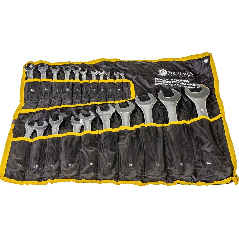 Набор комбинированных ключей 6-36мм Chrome vanadium сатинированных планшет ЭВРИКА ER-10210 позволяет монтировать и демонтировать шестигранный крепеж различной сложности. Прочная сталь и защитное покрытие продлевают срок службы каждого инструмента.