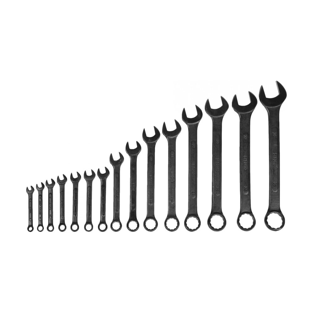 Набор гаечных комбинированных ключей15 шт SITOMO 8-36 42341 выполнен из прочной стали, которая выдерживает значительное усилие. Это позволяет без труда монтировать и демонтировать даже сложный крепеж.