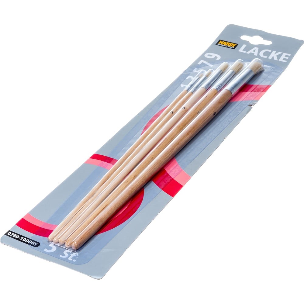 Набор круглых кистей HARDY для масляных красок и лаков, 5 шт. в упаковке 0280-100005 используется с масляными красками и лаками, морилками, лазурью, а так же подойдет для «работ по дереву».Кисти изготовлены из натуральной щетины китайской свиньи, что гарантирует точность и равномерность окраски.Кисти представлены в 5 размерах. Длина щетины от 10 мм до 25 мм.Круглые кисти - это комплексное решение для окраски и лакировки небольших помещений или предметов, например окон, дверей, мебели. Идеальное дополнение к малярным кистям и валикам. Имеет натуральную щетину, которая хорошо впитывает и равномерно распределяет лакокрасочные материалы по поверхности. Высокопроизводительная кисть, которая красит очень гладко и не оставляет никакого мусора и кусочков ворсинок на поверхности. Расщепленный кончик— особенность волоса щетины китайской светлой свиньи, позволяет удерживать большой объем краски и наносить ровный слой на поверхность. Кисть даже после продолжительного использования не теряет свою форму.