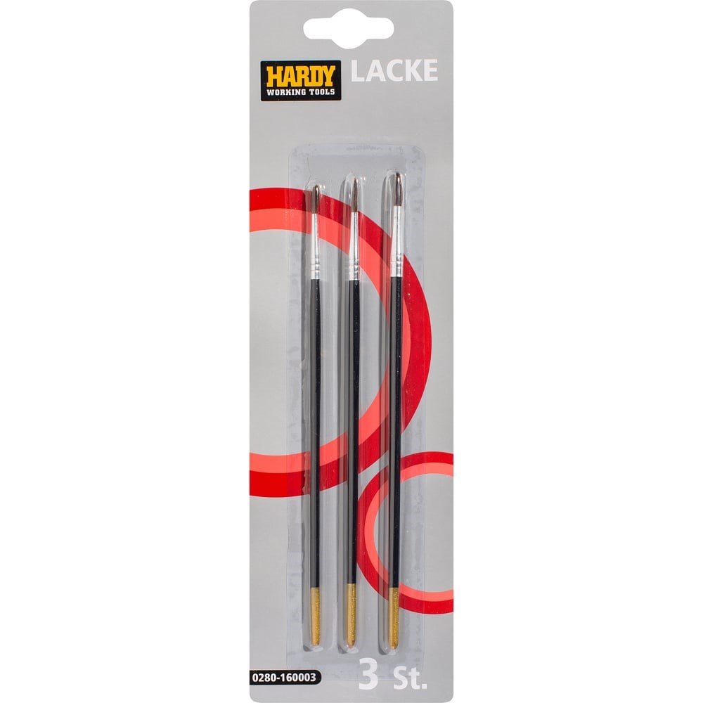 Набор кистей для масляных красок и лаков HARDY 3 шт. 0280-160003 предназначен для работ по покраске небольших поверхностей, труднодоступных мест и отделке деталей, а также для художественных работ на холсте, бумаге, оргалите и других поверхностях. Кисти изготовлены из натуральной щетины китайской свиньи, что гарантирует точность и равномерность окраски. Имеют удобную деревянную ручку и металлический бандаж. Подходят для любых красок и масла. Сохраняет свою форму в течении долгого времени. В наборе 3 кисти, длина щетины от 10,13,15 мм, размер: 1, 2, 5.