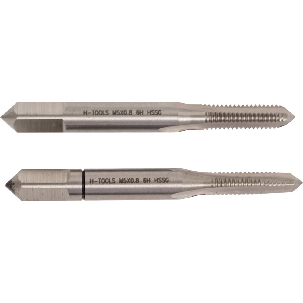 Набор метчиков из 2-х шт. H-Tools предназначен для создания внутренней метрической резьбы с углом профиля 60 градусов в различных материалах. Изготовлен из высококачественной быстрорежущей стали HSS-G, которая гарантирует прочность и износостойкость. Подходит для обработки заготовок, выполненных из легированной стали, чугуна, алюминия, меди, бронзы, цинка, с пределом прочности до 800MPa. Формирование резьбы происходит в 2 этапа: сначала черновым метчиком №1 (6-8 ниток на заход), затем финишным №3 (2-3 нитки на заход). Благодаря этому, снижается усилие, прилагаемое к каждому метчику, а получаемая резьба более точная и чистая.