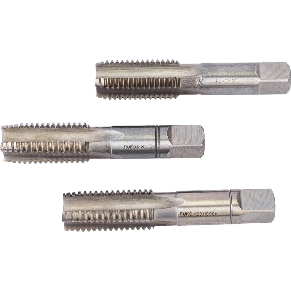 Набор ручных метчиков Ruko M20x2,5мм 230200E, предназначен для создания внутренней резьбы в различных материалах. Изготовлен из высококачественной быстрорежущей стали HSSE (кобальт 5%), которая гарантирует прочность и износостойкость. Формирование резьбы происходит в 3 этапа, сначала черновым метчиком(№1), затем чистовым(№2) и финишным(№3). Благодаря этому, снижается усилие, прилагаемое к каждому метчику, а получаемая резьба более точная и чистая. Подходит для обработки заготовок, выполненных из легированной или нержавеющей стали, чугуна, алюминия, меди, бронзы, цинка, с пределом прочности до 1000MPa.