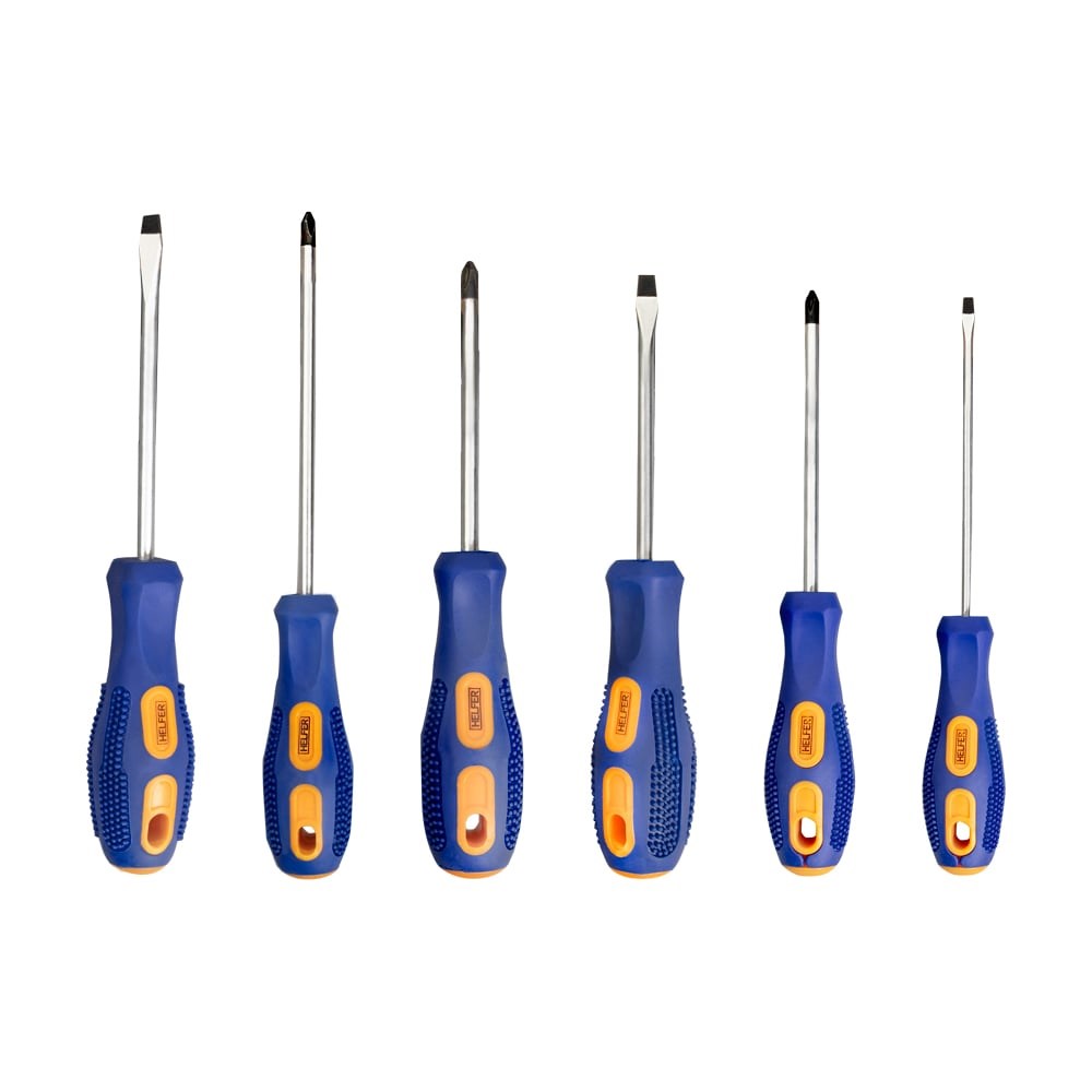 Набор отверток HELFER 6 в 1 HF004013 предназначен для работ с крепежными соединениями, имеющими крестовой или прямой шлиц. Подходит для профессионального и бытового использования. Стержень выполнен из хромованадиевой стали, благодаря чему отличается прочностью и долговечностью. Эргономичная двухкомпонентная рукоятка устойчива к воздействию химически агрессивных сред.