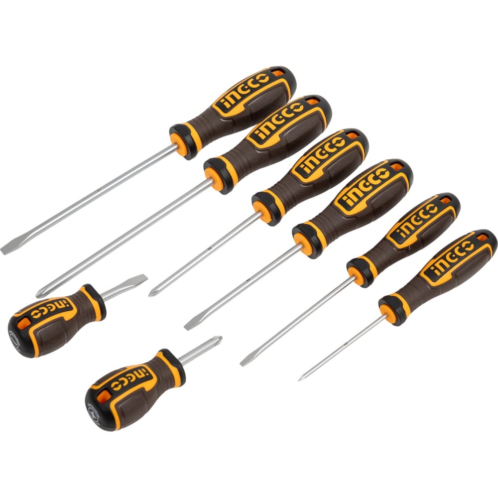 Набор отвëрток 8 шт S2 SUPER INGCO HKSDS0828 INDUSTRIAL применяется для монтажа и демонтажа резьбовых соединений. Все стержни изготовлены из высококачественной стали S2 с антикоррозийным хромовым покрытием и обладают особой прочностью. Это обеспечивает высокую износостойкость и долгий срок службы. Эргономичные трехкомпонентные противоскользящие рукоятки. Магнитные наконечники удерживают крепеж и значительно упрощают работу в труднодоступных местах.Длина стержня: от 38 до 150ммОбщая длина: от 100 до 260 мм