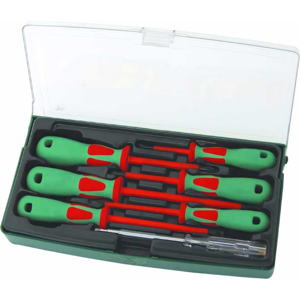 Набор стержневых диэлектрических отверток Jonnesway DV13PP07S 7 предметов 48787 состоит из 7 отверток, имеющих рабочий профиль PH и SL, предназначенных для работы с резьбовыми соединениями, находящимися под электрическим напряжением. Стержни отверток выполнены из стали, легированной хромом и ванадием. Набор помещен в удобный бокс с прозрачной крышкой и защелкой.