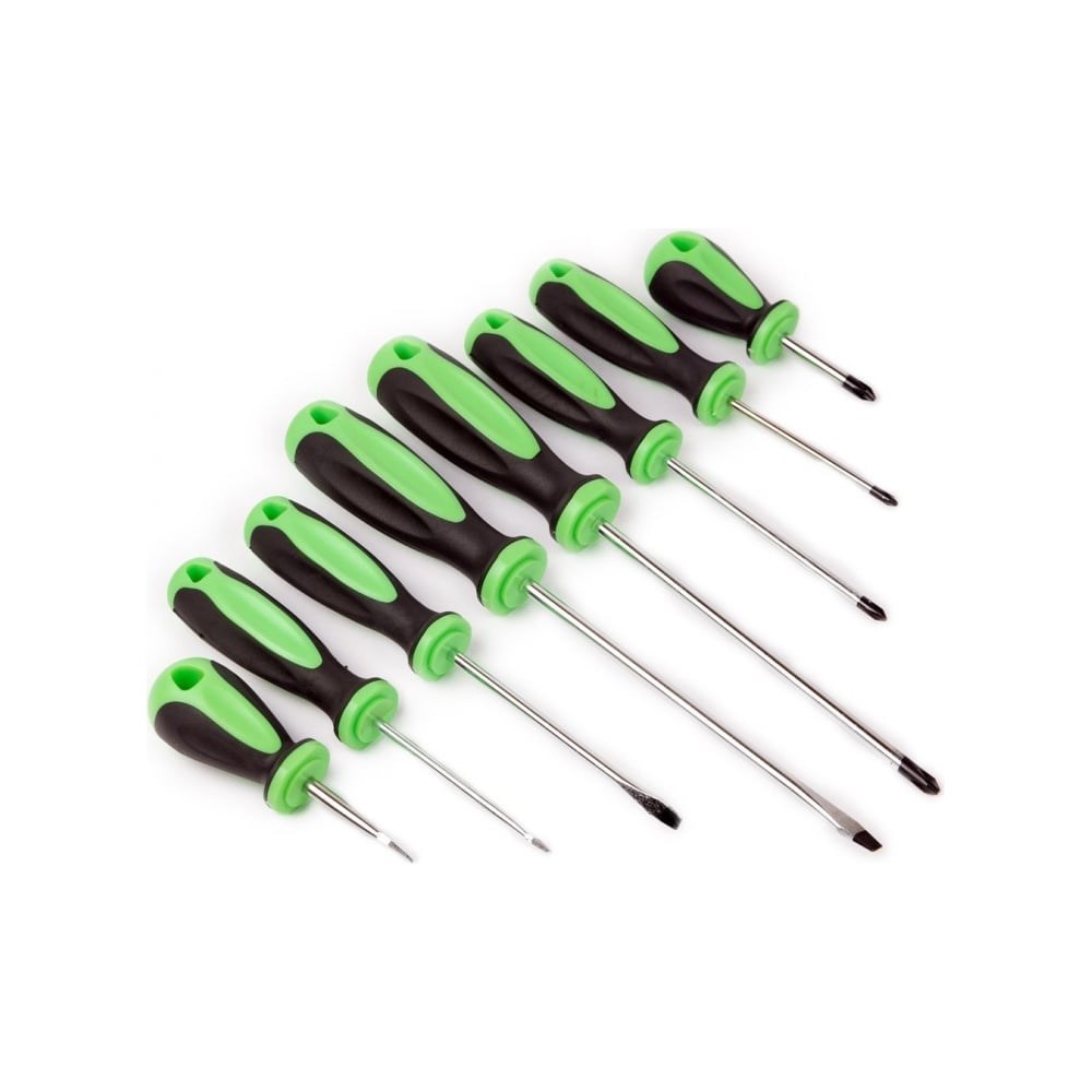 Набор отверток в блистере от бренда Помощник включает 8 предметов, предназначенных для завинчивания и отвинчивания крепёжных изделий с резьбой. Характеристики Материал стержней: Высококачественная сталь, обеспечивающая прочность и стойкость к износу. Эргономичные ручки: Удобная форма, которая гарантирует комфортное использование и предотвращает утомление руки при длительной работе. Универсальность: Подходит для различных задач, связанных с работой с винтами и болтами. Долговечность: Высококачественные материалы гарантируют надежность и долговечность использования. Комфорт: Эргономичный дизайн ручек обеспечивает удобство при длительном использовании. Применение Идеален для ремонта и сборки мебели, техники, автомобилей и других устройств. Может использоваться как профессиональный инструмент в автосервисах и на производстве, а также подходит для домашнего использования, дачи или гаража. Набор отверток от бренда Помощник — это надежный инструмент, который станет полезным помощником в любых задачах, связанных с крепежом.