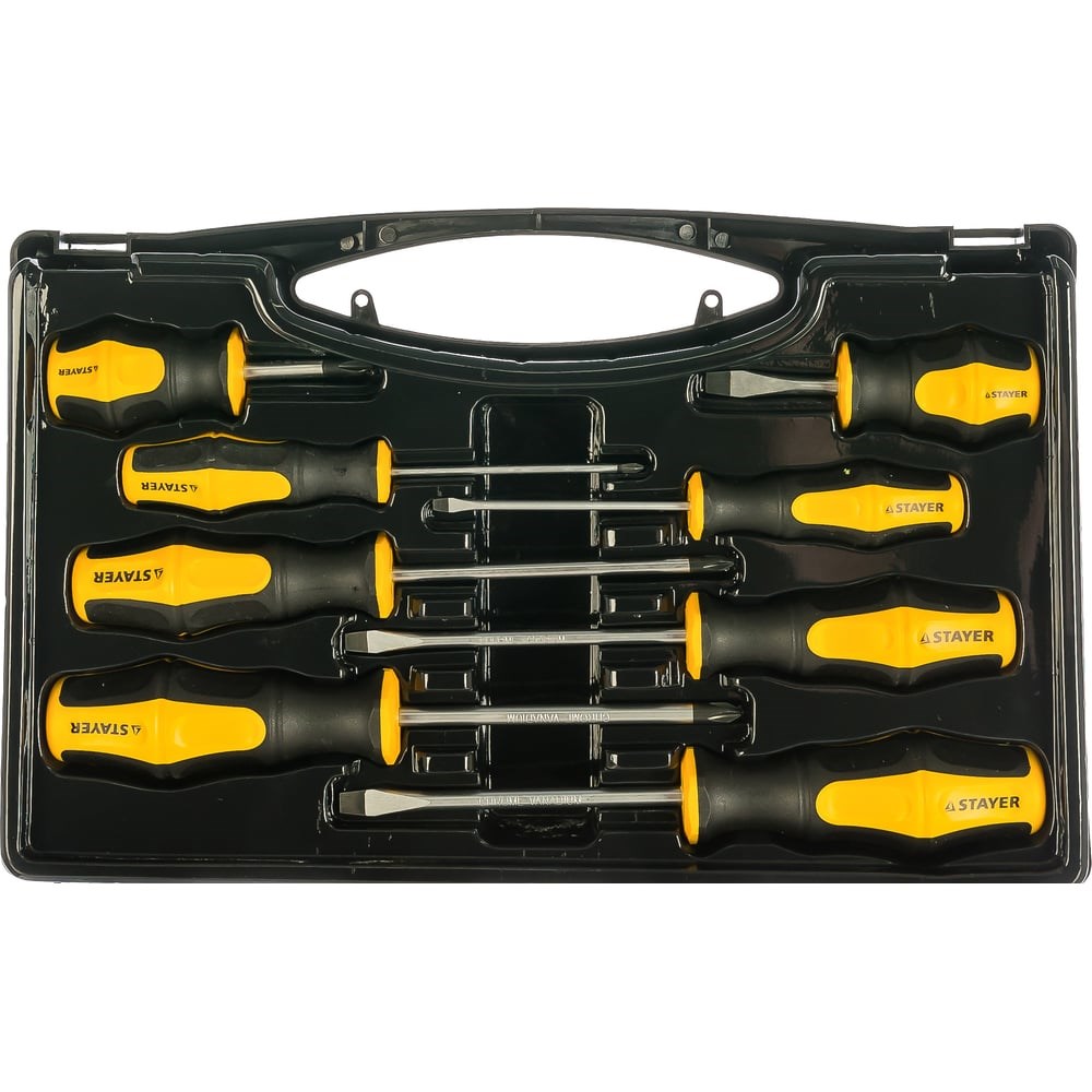 Набор отверток STAYER MASTER HERCULES Cr-V, эргономичная двухкомпонентная рукоятка, 8шт 25055-H8_z02 применяется для монтажа и демонтажа резьбовых соединений. Подходит для работ в быту, а также для профессионального использования.