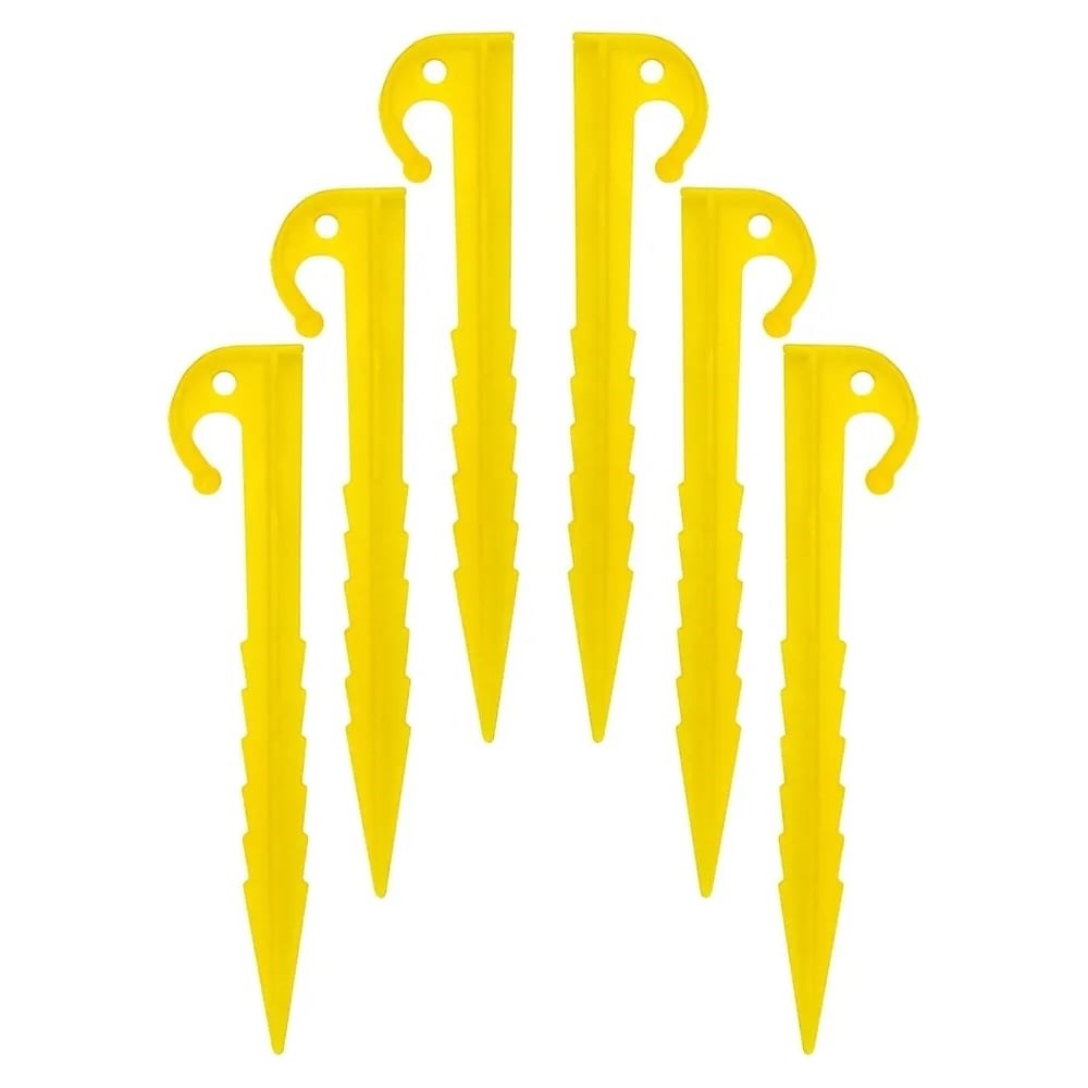 Набор пластиковых колышков COGHLAN'S 6шт, 14.5см 936MA сделаны из легкого АБС-пластика, имеют прочную конструкцию и надежно удержат палатку или тент. Удобный крючок с отверстием поможет крепко и надежно закрепить веревку, 4х гранная конструкция предотвратит проворачивание в грунте, а зазубрины обеспечат более надежную фиксацию. Для эффективного закрепления вдавите или забейте колышек в грунт на глубину не менее 3/4 его длины. Ярко желтый цвет делает колышки заметными на любой поверхности и не позволит споткнуться о них или потерять в траве. Отлично подходят для небольших и средних палаток, брезента и сетей.