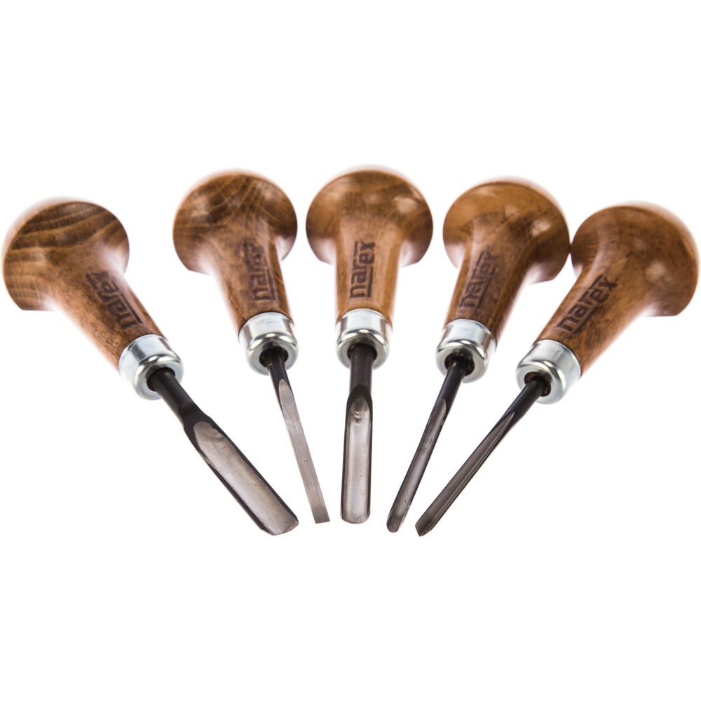 Набор из 5 резцов c полукруглой ручкой NAREX 868300 представляет собой комплект высококачественных ручных инструментов для фигурной резки по дереву. Приспособления полностью изготовлены из прочных и надежных материалов (лезвия - из хром-ванадиевой стали твердостью 61-62 HRc, ручки - из древесины с восковым покрытием). Режущие кромки остро заточены по особой технологии и на долгое время сохраняют свои первоначальные свойства.