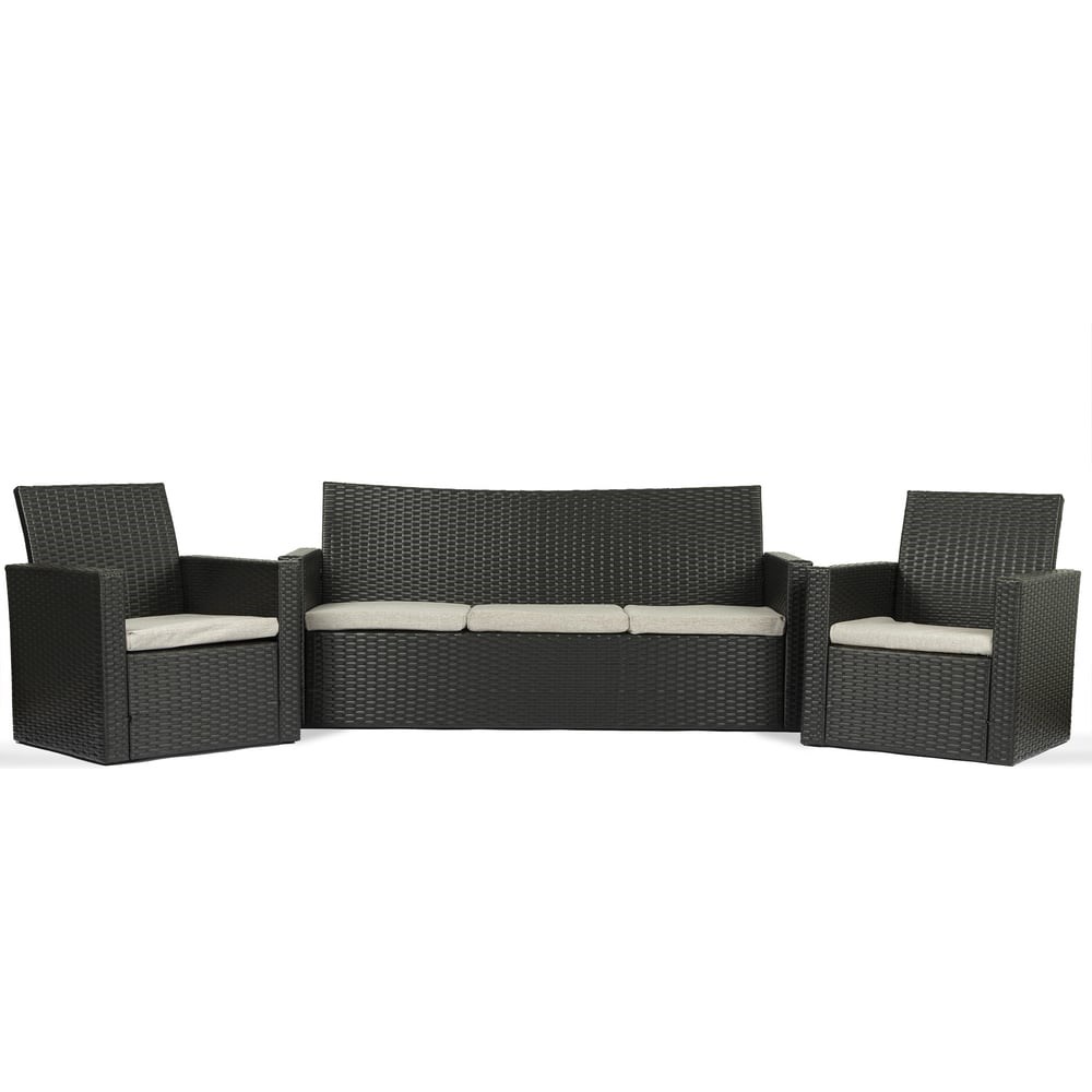 Набор садовой мебели Касабланка привлекательный большой гарнитур с трехместным комфортабельным диваном, который будет хорошо смотреться как на улице, так и внутри дома. Комплект состоит из двух просторных кресел, дивана и стола. Все предметы набора изготовлены из искусственного ротанга ручного плетения экологически чистого материала, также все элементы обладают повышенной прочностью за счет металлического каркаса, выдерживающего не менее 150 кг на одно место. Набор можно без опаски оставлять под открытым небом в любую погоду и сезон. Подушки на молнии, закалённое стекло, инструкция и все необходимое для сборки в комплекте. Размеры диван 1660х780х580, кресло 670х780х580, столик 890х380х500. Общий вес набора составляет 50 кг.