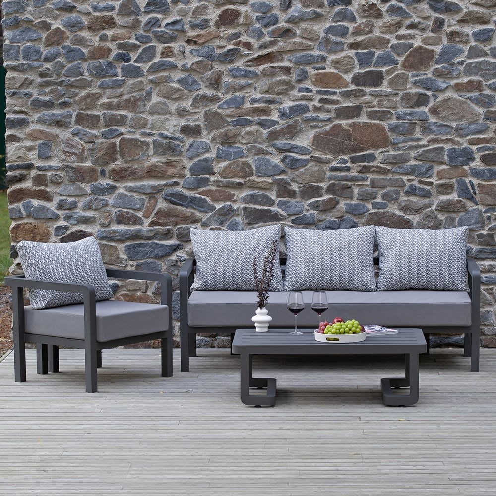 Набор садовой мебели AMALFI состоит из 3-х предметов: дивана, кресла и журнального столика, подойдет для размещения 4 персон. Уличный комплект создает комфортную зону для отдыха и приема гостей в загородном доме, клубе, отеле и ресторане. Прочная цельносварная конструкция и регулируемые ножки обеспечивают устойчивость мебели на любой поверхности. Прочный каркас мебели изготовлен из алюминия с матовым полимерным покрытием оттенка Lava. Диван и кресло дополняют большая подушка для сидения и мягкие подушки под спину в съемных чехлах из водонепроницаемой ткани, 100% олефин. Габариты дивана 190x65х76 см, максимальная нагрузка 180 кг. Габариты кресла 74х65x76 см, максимальная нагрузка 150 кг. Высота от пола до сидения (металла) 32 см. Габариты журнального столика 112х66х37 см, максимальная нагрузка 70 кг. Мебель доставляем в собранном виде в надежной упаковке.